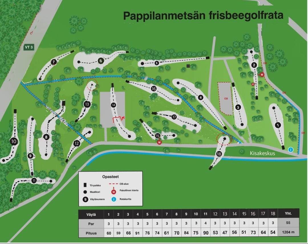 Pelataan kilpailuun suunniteltua 18- väyläistä rataa Hämeenkyrössä kaksi kierrosta.