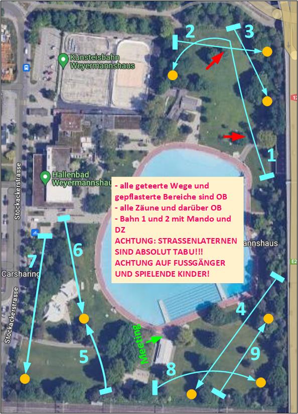 2 Runden à 9 Bahnen