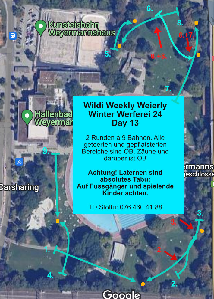 Ich werde wieder die Techdisc mitnehmen mit Fangnetz. Wer im Anschluss probieren und trainieren will soll sich doch das App: TechDisc auf Handy laden. Somit habt ihr dann eure persönlichen Daten bei euch und nicht in meinem Verlauf.