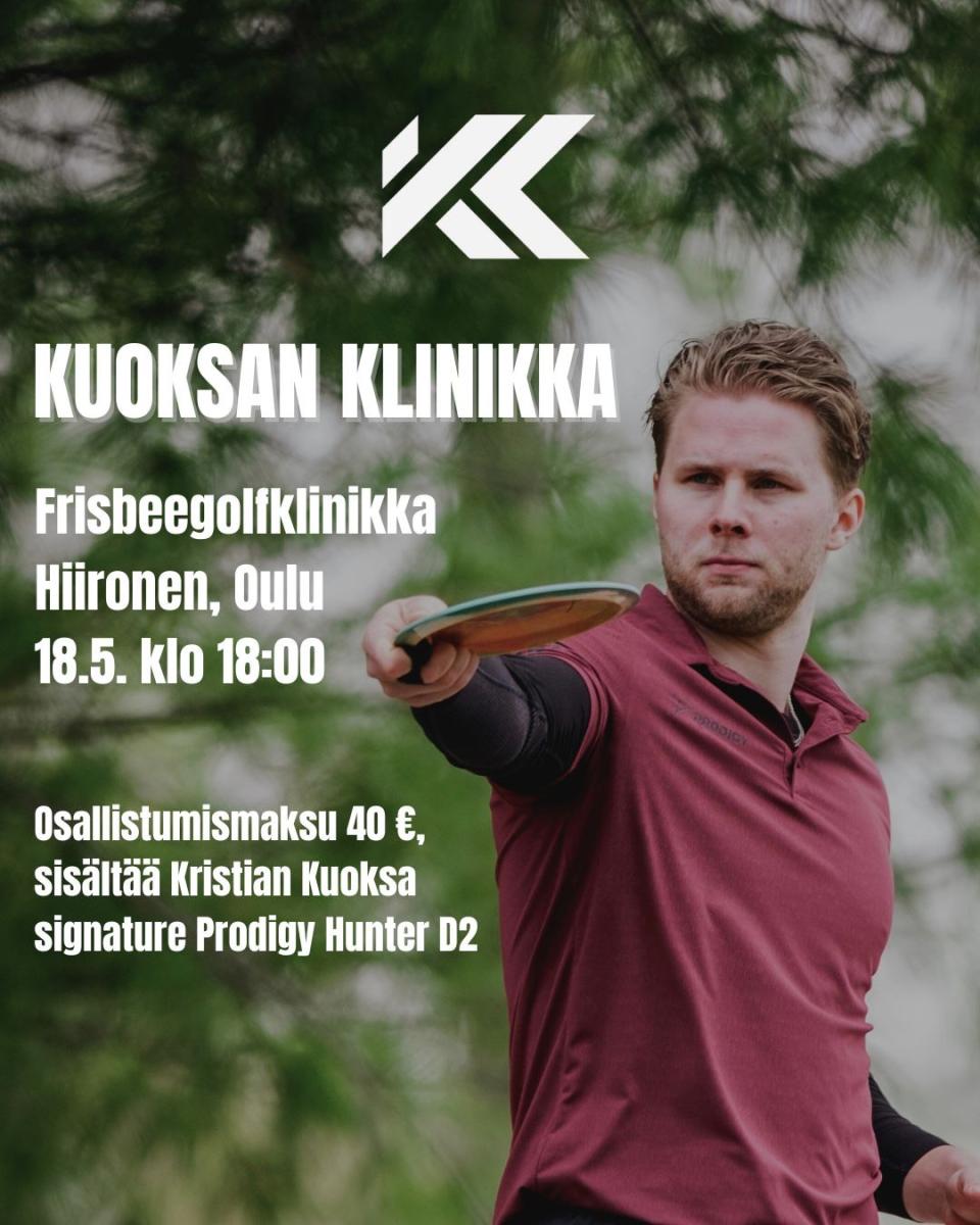 Oulun Frisbeeseuran Pro pelaaja Kristian Kuoksa saapuu Ouluun 18.5. ja pitää heittoklinikan.