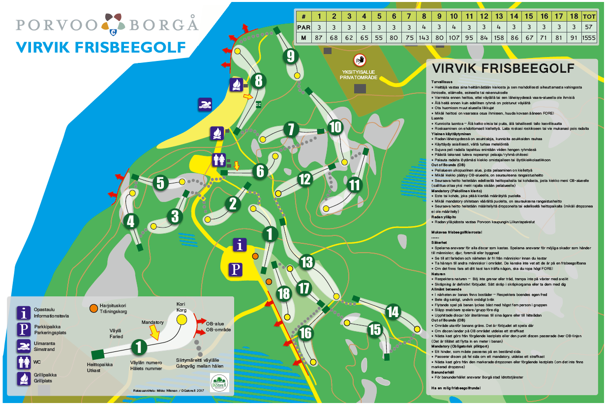 - Yksi kilpailukierros (1x18väylää) Virvikin frisbeegolfradalla