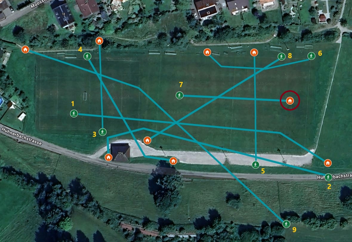 Das Weekly findet auf dem Fussballplatz Moos in Langnau statt 15min zu Fuss vom Treffpunkt.