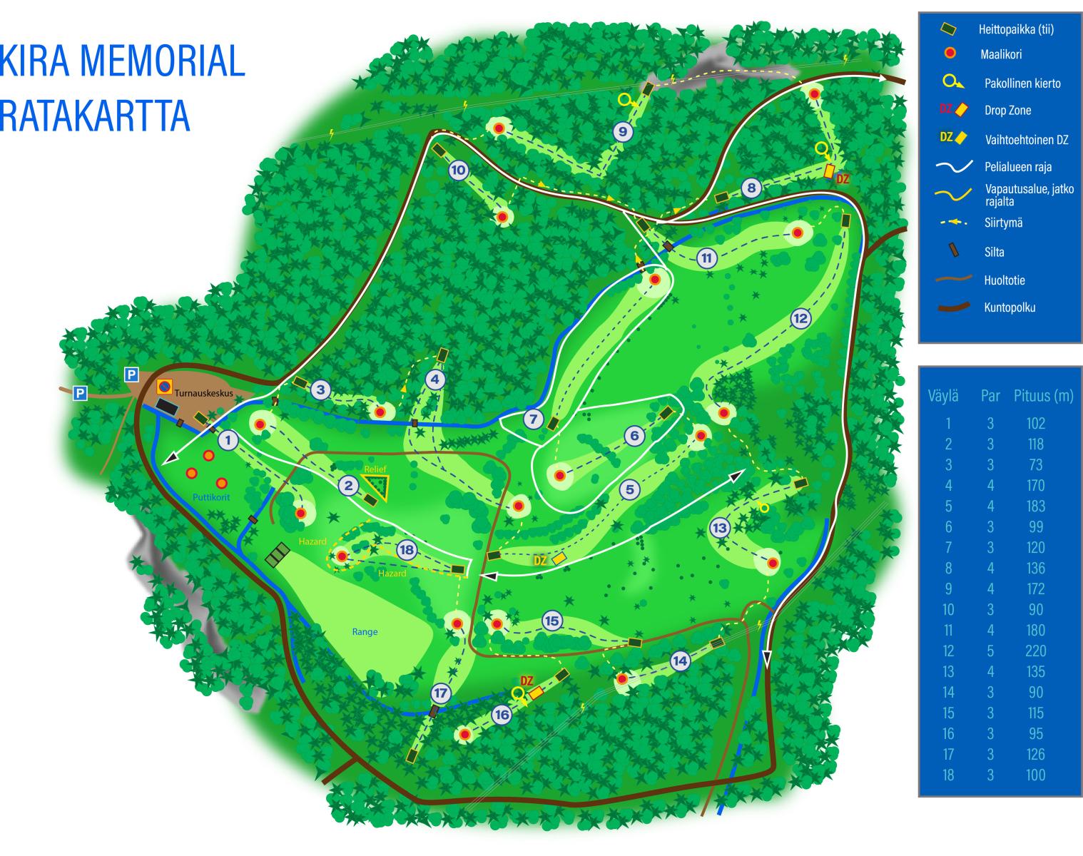 Erikoisväylä, joka pelataan Lausteen Kyy-layoutin tiipaikalta normaalin väylän 18 koriin.
