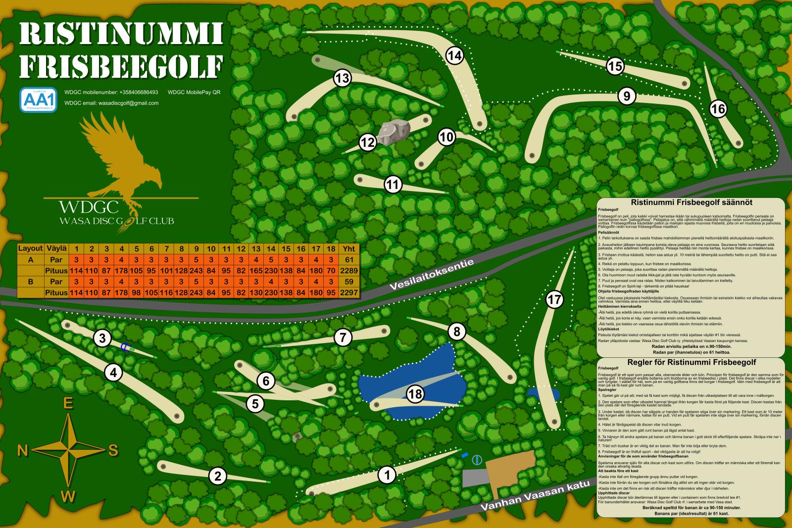 Wasa Disc Golf Club ry ja Sport Store Bigfoot järjestävät Suomen Frisbeegolfliiton alaisen kahden kierroksen frisbeegolfkisan Ristinummen Frisbeegolfradan AMA-leiskalla sunnuntaina 10.8