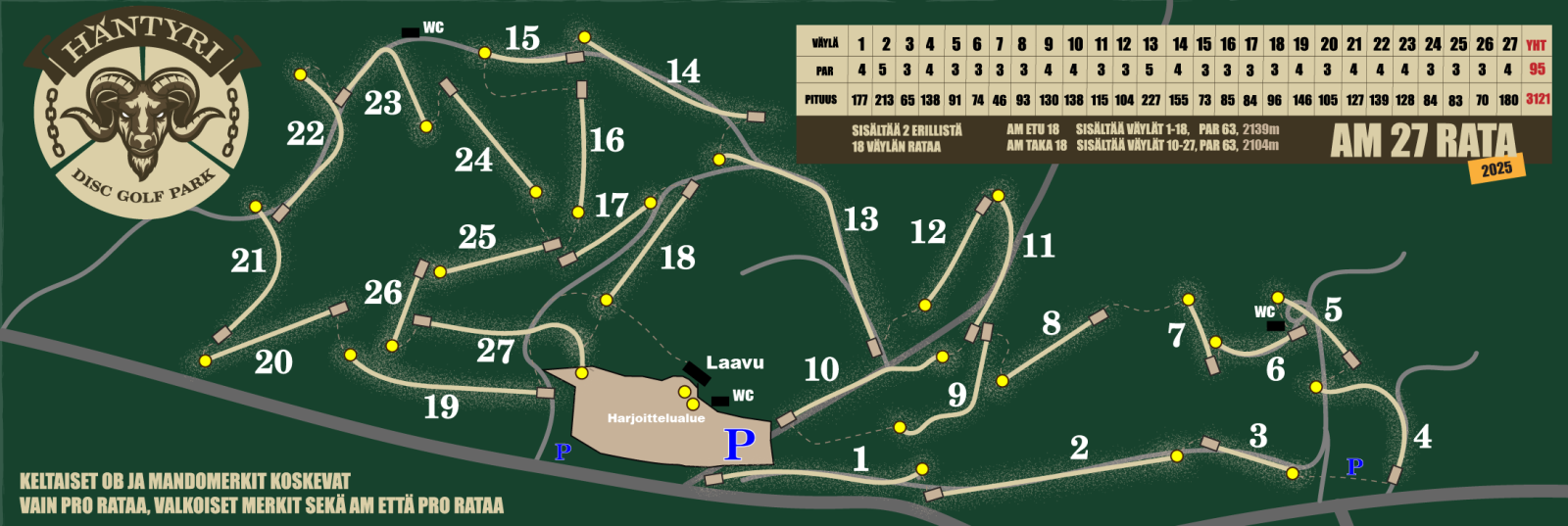 Pelataan koko Häntyri ama 27 väylää.