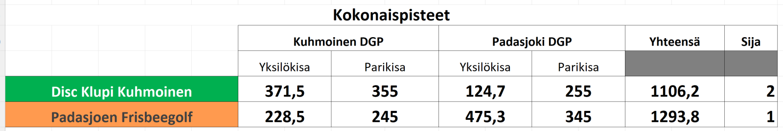 Lisäksi jaetaan yksilökisan voittajalle +10 pistettä, sekä enemmän pisteitä saaneelle joukkueelle +10 pistettä eli yksilökisasta jaetaan yhteensä 600 pistettä per rata aivan kuten parikisaosiostakin.