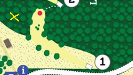 Pelataa 1 väylän uusi koripaikka (keltaisella merkitty kuvassa) - Edelleen par 4, triplamando sekä droppari pelissä.