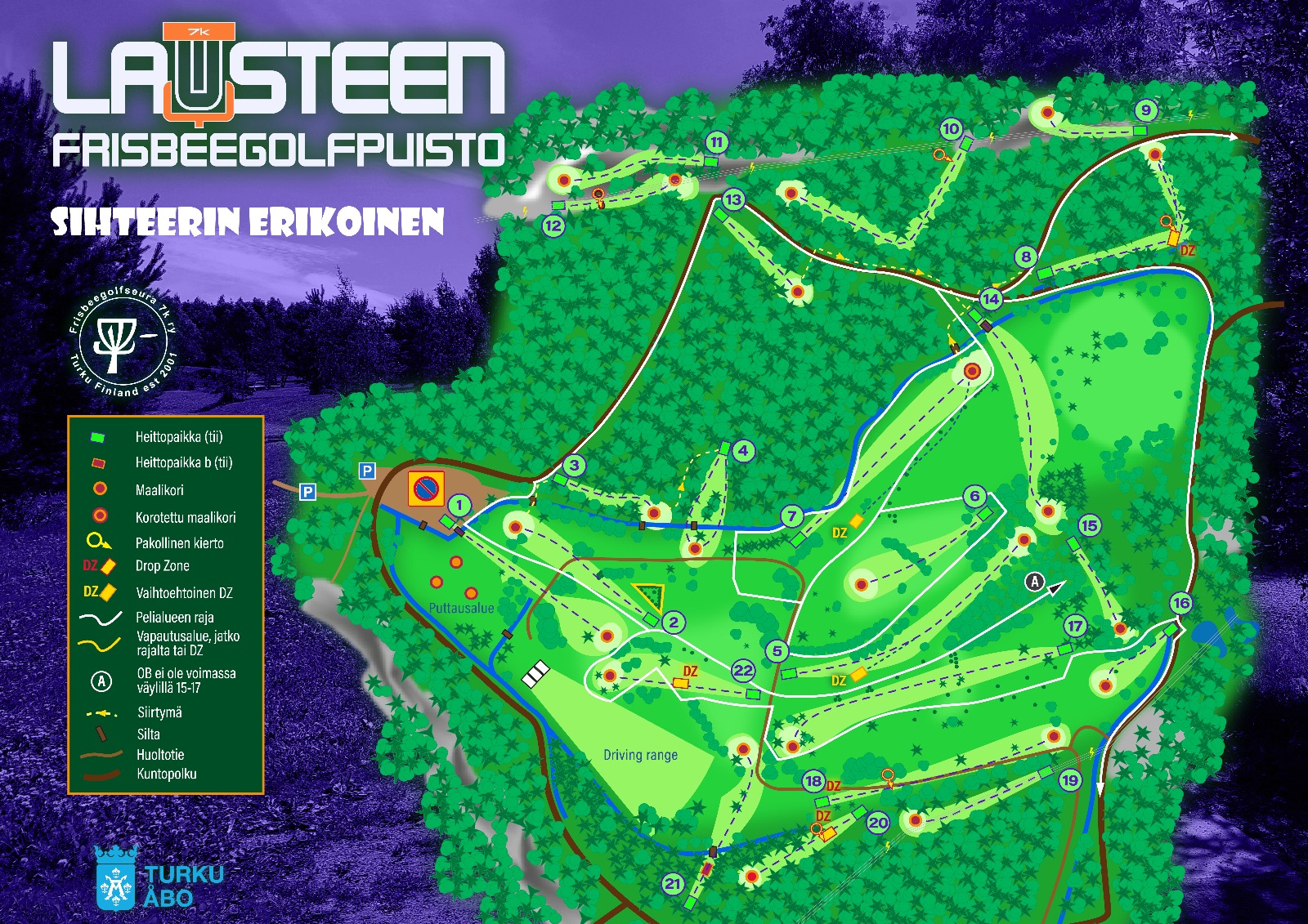 7k:n järjestämät viikkokisat pelataan joka keskiviikko Lausteen frisbeegolfradalla osoitteessa Hiihtomajanpolku 1, 20750 Turku.