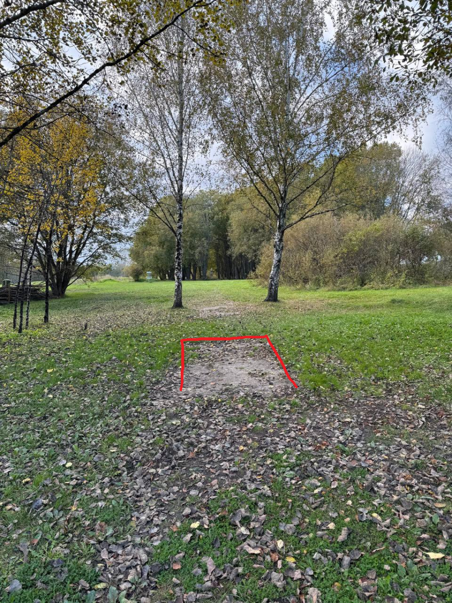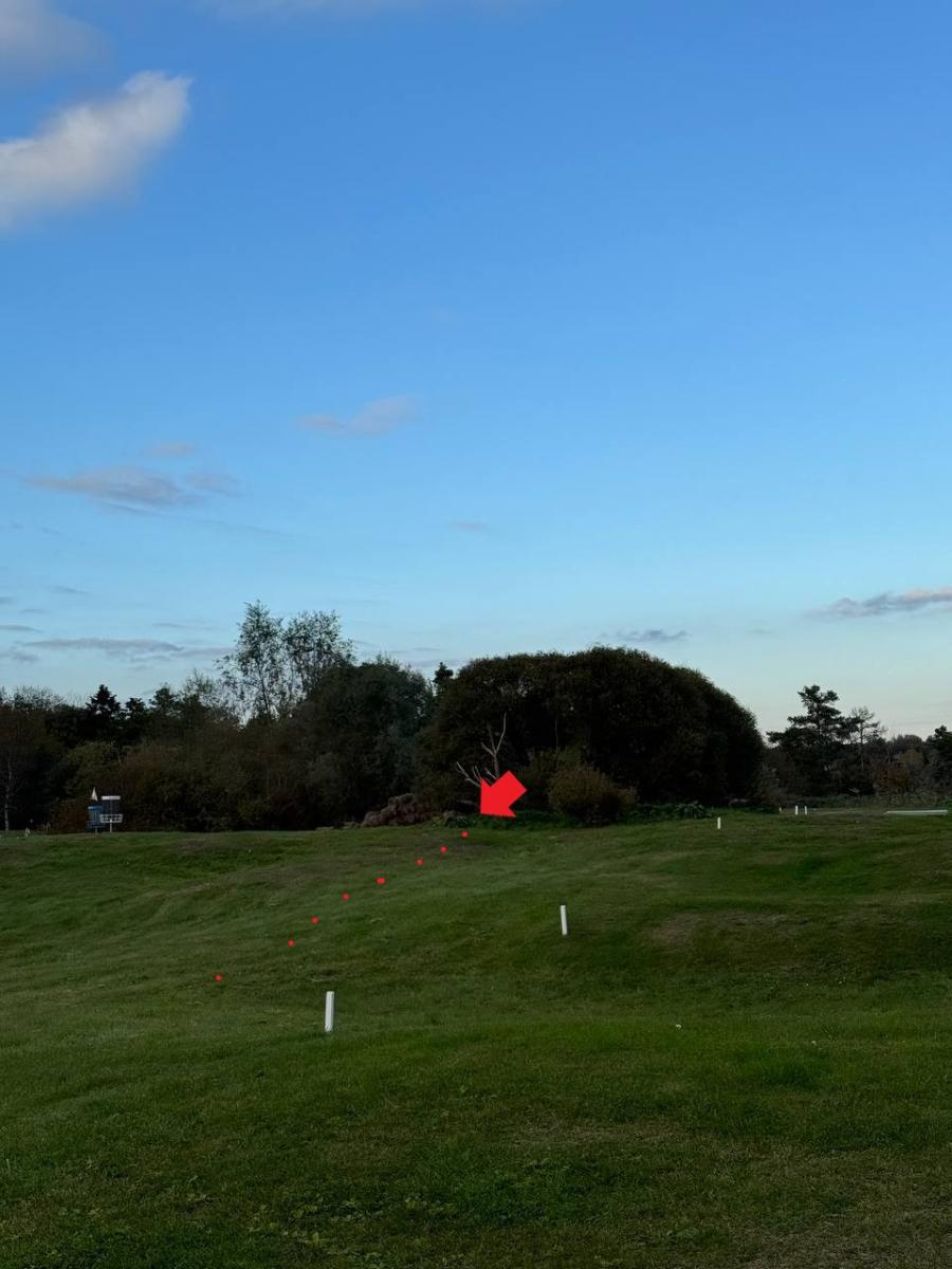 Pelataan kiinteän 4 väylän tiiltä kiinteän 3 väylän siniseen koriin. Keskellä väylää sijaitseva kuollut puu on MANDO. Kierrettävä niityn puolelta ratakartan mukaisesti.Jos mando väärin, re-tee rangaistuksen kera.