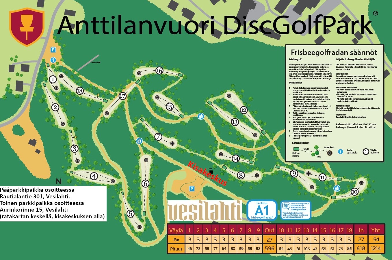 Kilpailussa pelataan 18- väyläistä rataa Anttilanvuoren DiscGolfParkissa kaksi kierrosta.