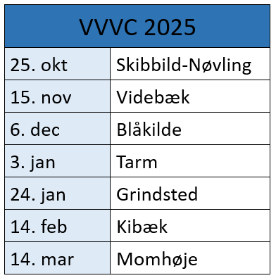 Hen over vinteren 2025-26 vil vi afvikle 7 afdelinger af VVVC.