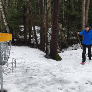Pelataan Vesalan leirikeskuksen 9-väyläisellä radalla.