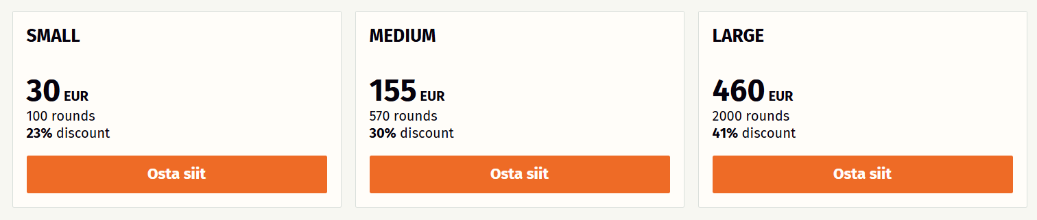 These examples are calculated with the standard round fee of 0,39€ per player per round. Please notice that purchasing rounds beforehand can give you significant discounts.
