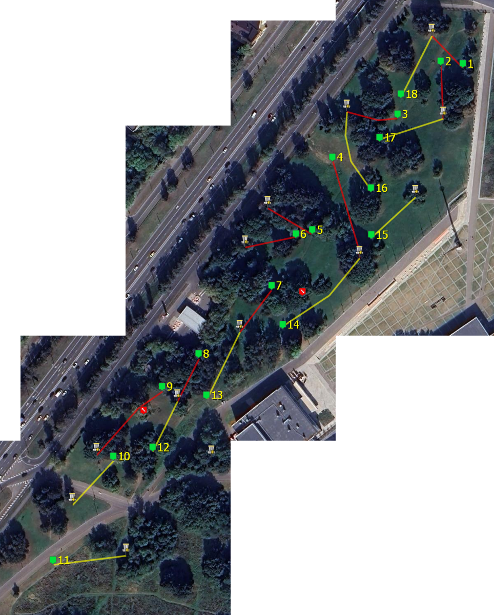 Схема для новичков, версия 2025. Прохождение парка зигзагом по кругу вниз и вверх. Пересекает стандартные пути, можно играть только если парк относительно свободный.